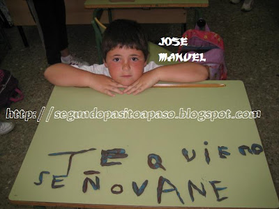 LOS ÚLTIMOS DÍAS DE COLE, JUGAMOS CON LA PLASTI, QUE NOS ENCANTA SOBRE TODO MEZCLARLA Y CREAR NUEVOS COLORES (JEJEJE). PUES BIEN, ME LLAMABAN PARA QUE VIERA SUS CREACIONES, PERO ALUCINÉ CUANDO ME LLAMÓ A SU MESA MI JOSE MANUEL PARA ENSEÑARME ESTE MENSAJE CON PLASTILINA. ME QUEDÉ.... SUPER EMOCIONADA. ESTO ERA DIGNO DE FOTOGRAFIA Y GUARDAR PARA SIEMPRE, NO SÓLO EN MI MEMORIA.
